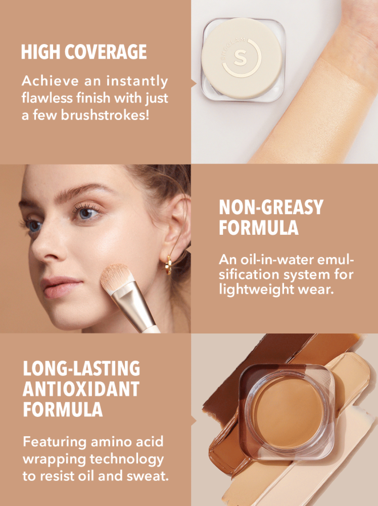 احصلي على تغطية عالية وتطبيق فوري خالي من العيوب بشكل أسرع من أي وقت مضى ببضع ضربات من فرشاة المكياج.