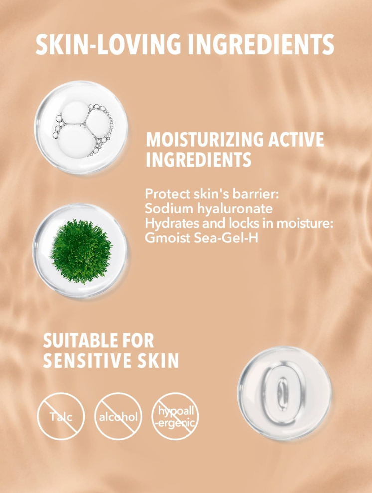 تركيبة شيجلام الحصرية غير الدهنية تدوم طويلاً، وتعتمد على نظام استحلاب الزيت في الماء، والذي يلتصق بالبشرة بقوام رقيق.
