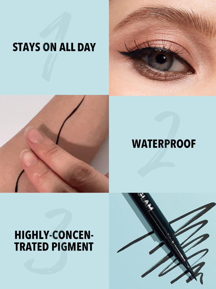 Create a razor-sharp wing look that'll look pro-level cool with best selling SHEGLAM Pro Precision Waterproof Liquid Eyeliner! This extremely fine felt-tip liquid eyeliner features a waterproof, pigment-rich formula that will last you all day long and looks good with any eye look.